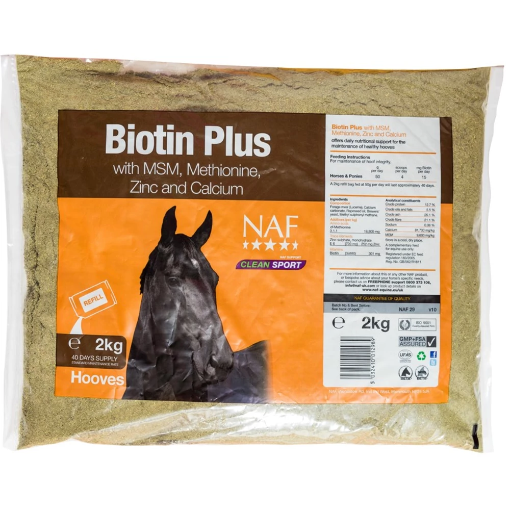 Biotină pentru copite sănătoase. Conține o cantitate ridicată de biotină și zinc-metionină organică – o sursă esențială de zinc legat de aminoacizi, necesară pentru formarea unui strat puternic de keratină. Biotina contribuie la creșterea sănătoasă a copitelor și are efecte benefice asupra pielii și părului.