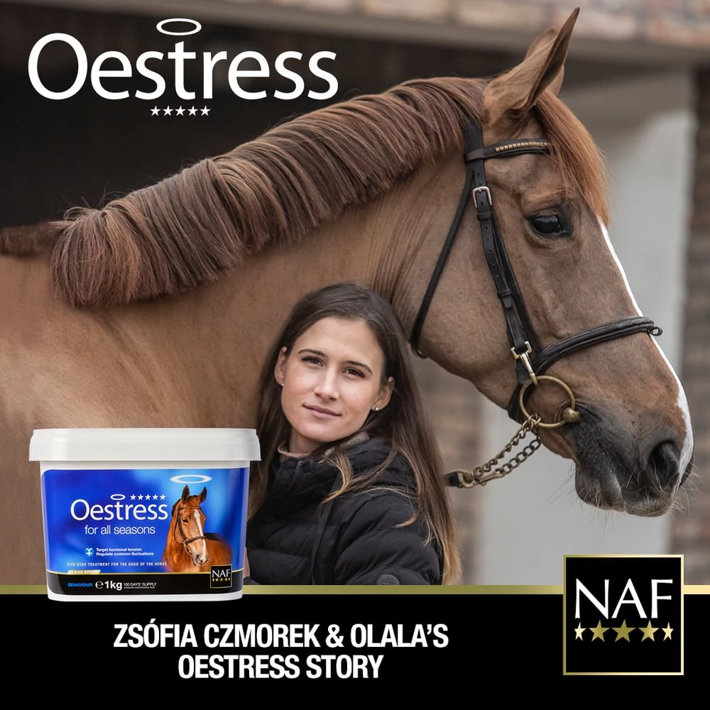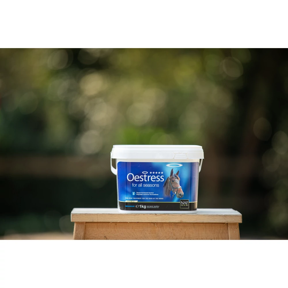 NAF Oestress Powder este un supliment natural conceput special pentru iepele sensibile hormonal, predispuse la schimbări de dispoziție, iritabilitate sau comportament tensionat în timpul ciclului. Formula unică combină plante medicinale și magneziu, susținând echilibrul hormonal, sănătatea uterului și a ovarelor, precum și un comportament calm și cooperant pe tot parcursul ciclului.